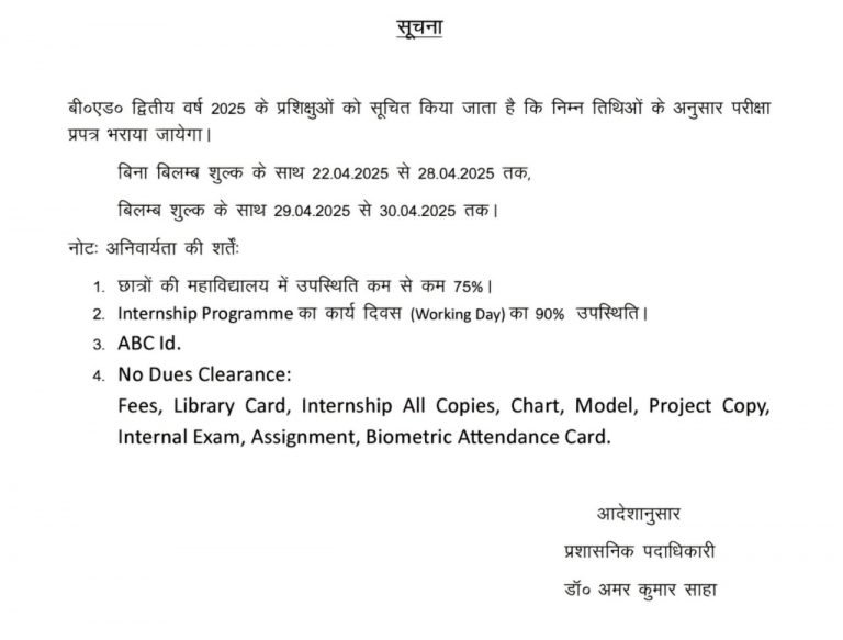 B.Ed – 1st year Form Fill-up Notice -