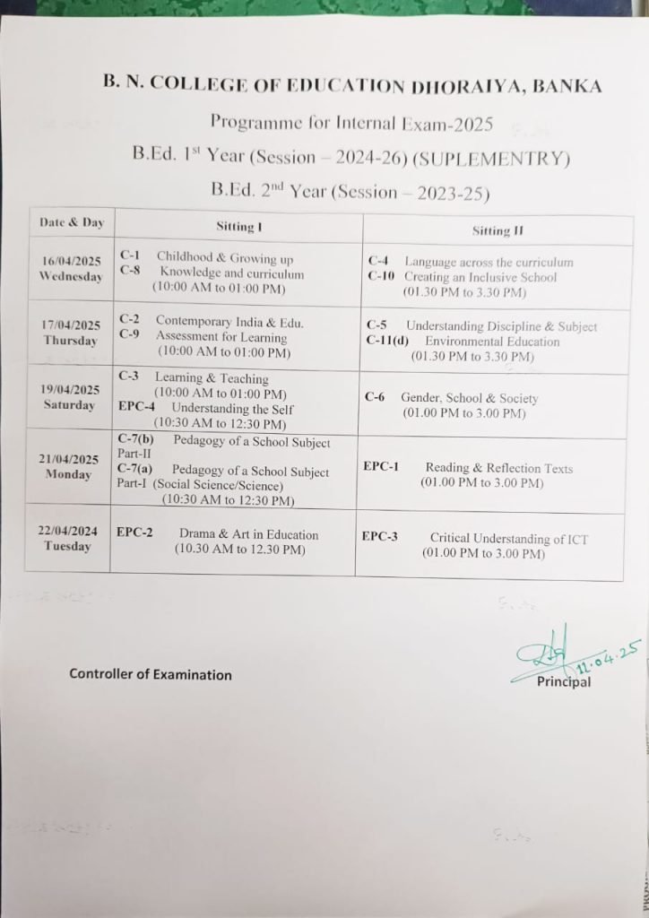B.Ed – Internal Exam 2025 -