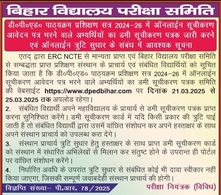 BSEB Notice – Dummy Admit Card DP Ed. 2025 -