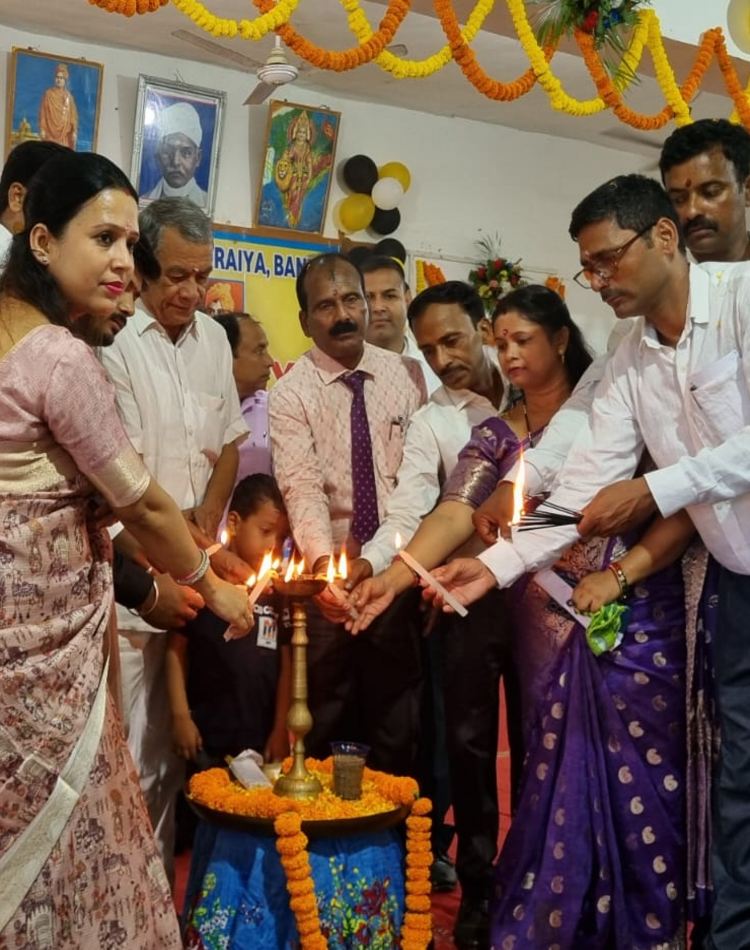 A memorable moment as teachers and guests come together to light the ceremonial lamp. This symbolizes the beginning of a new journey filled with knowledge and inspiration. The warmth of unity and joy shines brightly in every face. A day to remember, celebrating tradition, learning, and togetherness.